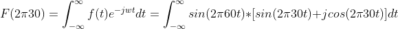 We have two variables, with a function of one variable inside a function of another variable, and it’s an integral, oh god make it stop. Okay okay hold on, don’t run out the door. Let’s take it slow, break it down piece by piece. We’ve set the angular frequency to a single value, so we can treat it like a constant. The integral is with respect to time, not frequency, so really we can just say the frequency is 30 and forget about it. Looking at that right side, time is the only variable left, we know how to handle this.