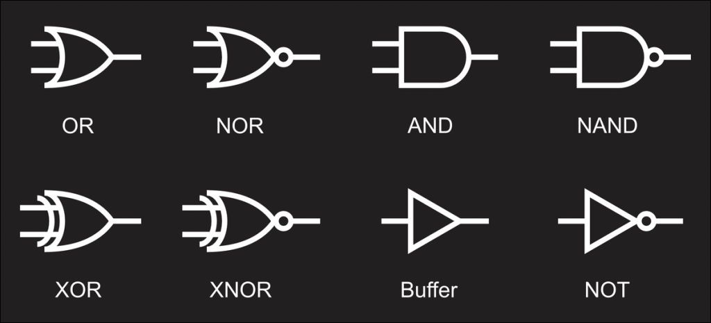 Now we have to take a sidestep into the world of mathematics. Very simple math, don’t worry, the world of Boolean algebra. Boolean algebra (really fun name to say btw) is all about the logic of True vs False statements. It’s stuff like “if A and B are true, then C must be true, but if A is true and B is false, then C cannot be true”. It’s pretty dry stuff. Doesn’t seem terribly useful here though does it? The nice thing about it is that it works on a binary system. True or false, nothing else and nothing in between. Now that word I said, “binary”, you’ve maybe heard it before in reference to computers. Here’s what it means. You know the normal system of decimal numbers written in Arabic numerals, digits from 0 to 9. Once you count past 9, you reset the first digit to 0, and the second digit goes from (an unwritten) 0 to a 1 and we get 10. Neat! Why 10 digits? Well because that’s how many fingers we have to count things with (do you think chimpanzees would count in base 20 using their toes?). This is why the word digits also means fingers. The ancient Babylonians used to count in base 12 because it was very easy to divide and multiply without accurate equipment, and the ancient Romans counted in base whatever-the-hell-we-feel-like. But we can also do math in a base 2 system, where our only digits are 0 and 1, and *all* the math is exactly the same. Nothing has fundamentally changed, you can still do complex calculus and trig, it’s just that the numbers look different. Now we have 0 and 1. False and True. Off and On. We can take our earlier statement and say “if A = 1 AND B = 1, then C = 1”. We can use Boolean algebra to do simple arithmetic.