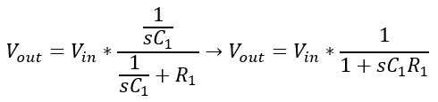 If we get smart and use our nifty gifty Laplace transform we can avoid gross differential equations and just use algebra. Sounds counterintuitive, but the complex Laplace transform actually keeps things easy and lets us stick to the physics and concepts instead of getting lost in calculus-land. From an algebra perspective, the capacitor and resistor are still a voltage divider.