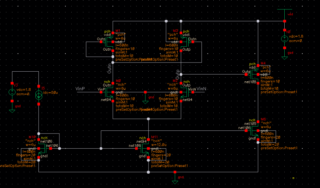 4/10/23 – Next up, I throw this into a testbench and set up some more formal tests. I’d like to get an idea of things like harmonic distortion, noise, common-mode rejection etc. From what I hear, Cadence is pretty much discontinuing ADE and will only be updating/supporting ADE Explorer i.e Maestro from now on, so I better get used to it.