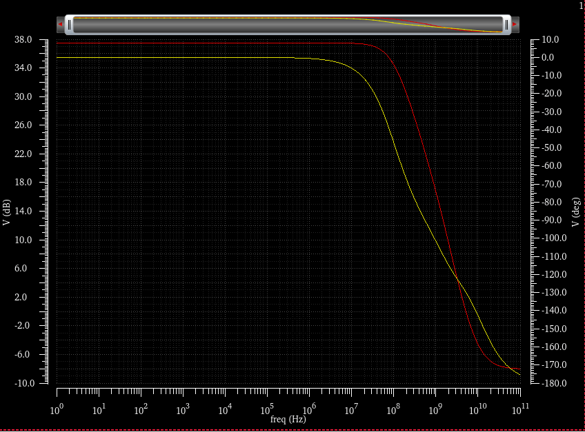 Crazy wideband already, 100MHz 3dB point with 4GHz gain crossover which….look I know that’s not a lot for all y’all IC designers, but coming from PCB design where anything above 10MHz GBW is considered pro, this is fun to see. Plus it matches what Razavi was getting in that LDO op-amp from my last post, because that was a fully differential OTA! Again, there is nothing I love more than when theory is reflected in practice.