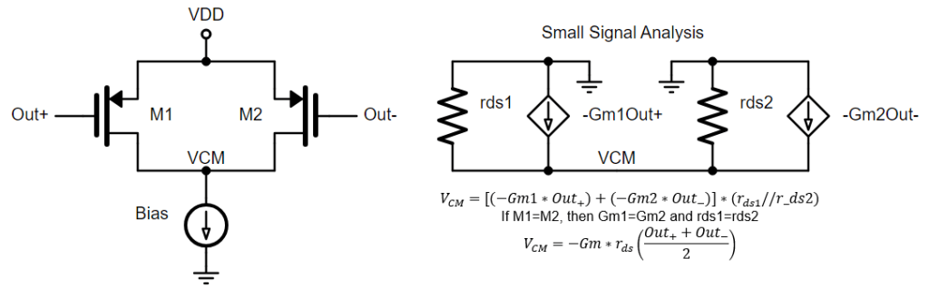 This tells me that if I make Gm*rds equal to 1, the output at the VCM node will be the average of the two outputs from the differential amplifier. Good to know. Also important to know that the polarity doesn’t matter.